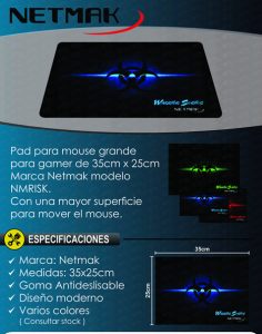 PAD Mouse GAMER NETMAK NM-RISK 35×25 CM Goma Antideslisable $170